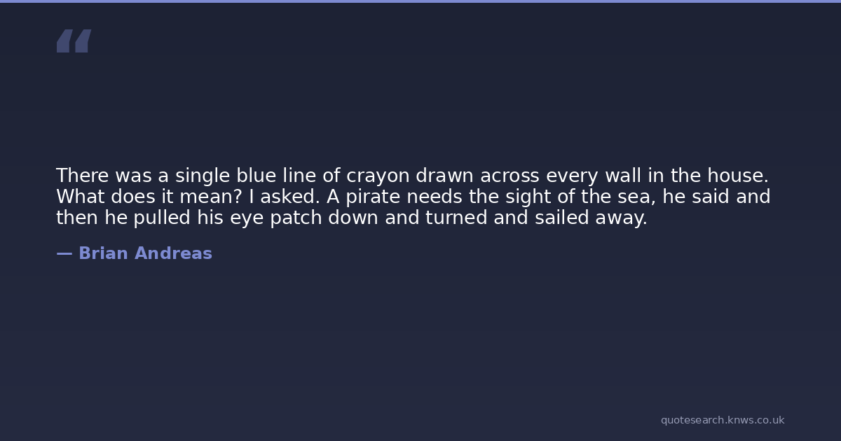 There was a single blue line of crayon drawn across every wall in the house. What does it mean? I asked. A pirate needs the sight of the sea, he said and then he pulled his eye patch down and turned and sailed away.