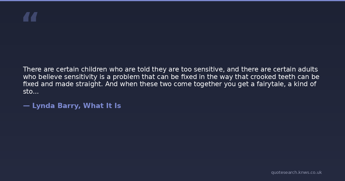 There are certain children who are told they are too sensitive, and there are certain adults who believe sensitivity is a problem that can be fixed in the way that crooked teeth can be fixed and made straight. And when these two come together you get a fairytale, a kind of story with hopelessness in it.I believe there is something in these old stories that does what singing does to words. They have transformational capabilities, in the way melody can transform mood.They can't transform your actual situation, but they can transform your experience of it. We don't create a fantasy world to escape reality, we create it to be able to stay. I believe we have always done this, used images to stand and understand what otherwise would be intolerable.