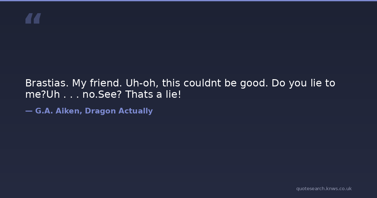 Brastias. My friend. Uh-oh, this couldnt be good. Do you lie to me?Uh . . . no.See? Thats a lie!