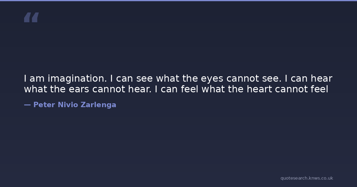 I am imagination. I can see what the eyes cannot see. I can hear what the ears cannot hear. I can feel what the heart cannot feel