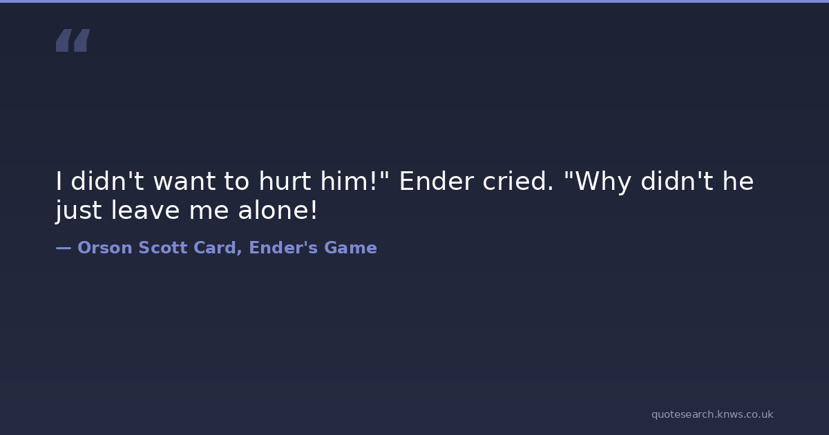 I didn't want to hurt him!" Ender cried. "Why didn't he just leave me alone!