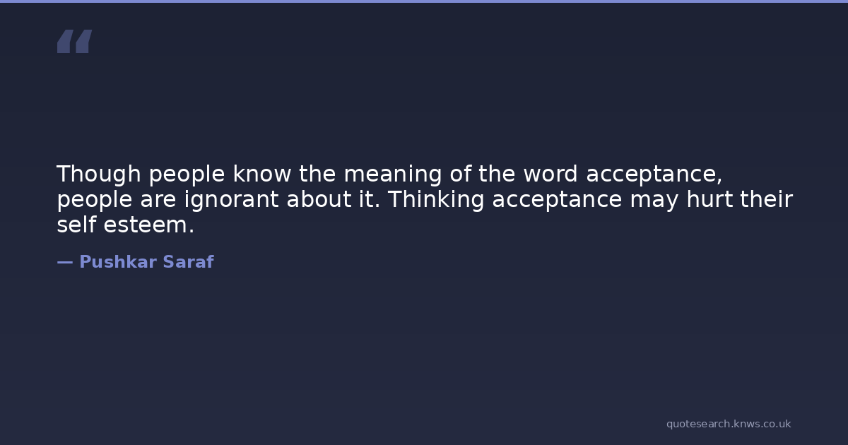 Though people know the meaning of the word acceptance, people are ignorant about it. Thinking acceptance may hurt their self esteem.