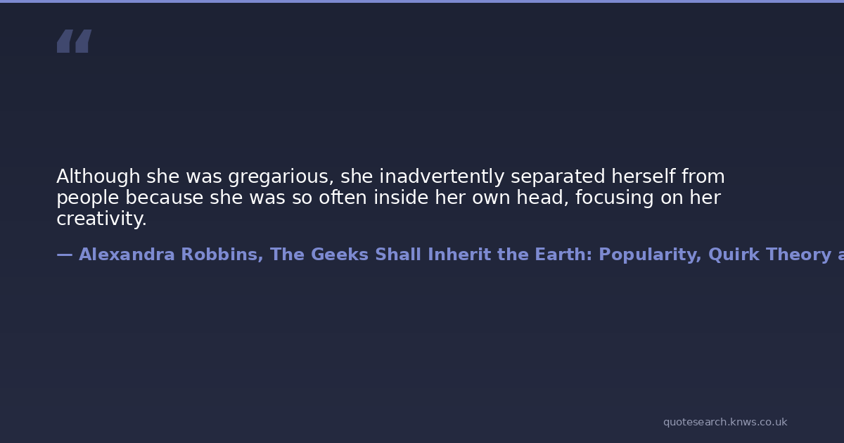 Although she was gregarious, she inadvertently separated herself from people because she was so often inside her own head, focusing on her creativity.