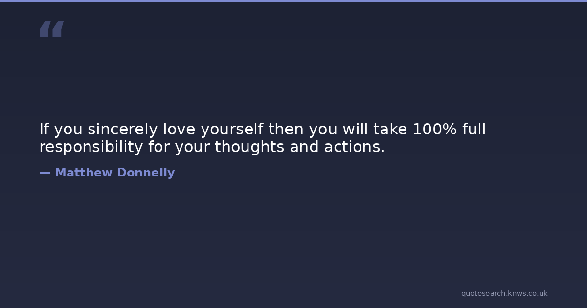 If you sincerely love yourself then you will take 100% full responsibility for your thoughts and actions.