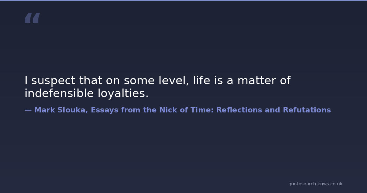 I suspect that on some level, life is a matter of indefensible loyalties.