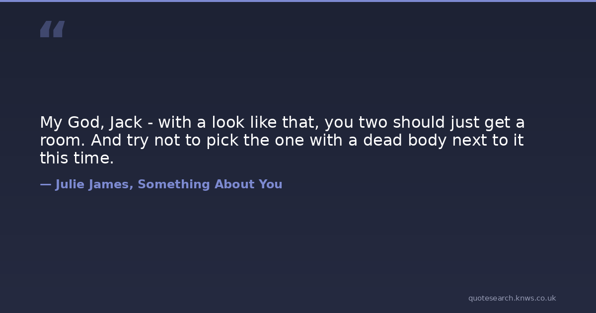 My God, Jack - with a look like that, you two should just get a room. And try not to pick the one with a dead body next to it this time.
