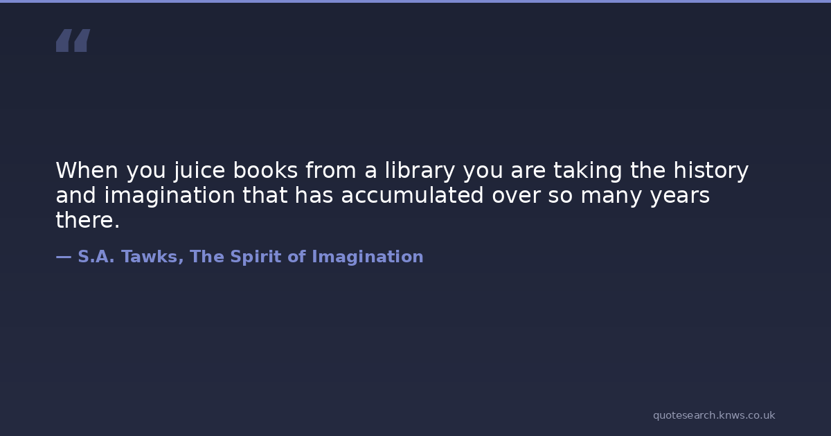 When you juice books from a library you are taking the history and imagination that has accumulated over so many years there.