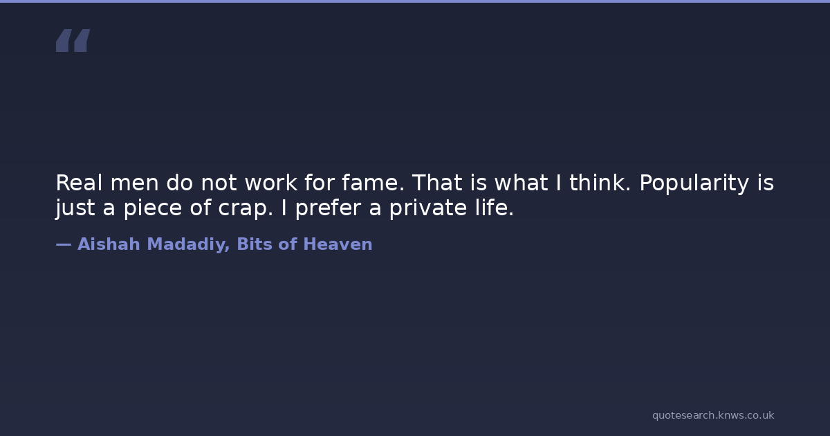 Real men do not work for fame. That is what I think. Popularity is just a piece of crap. I prefer a private life.