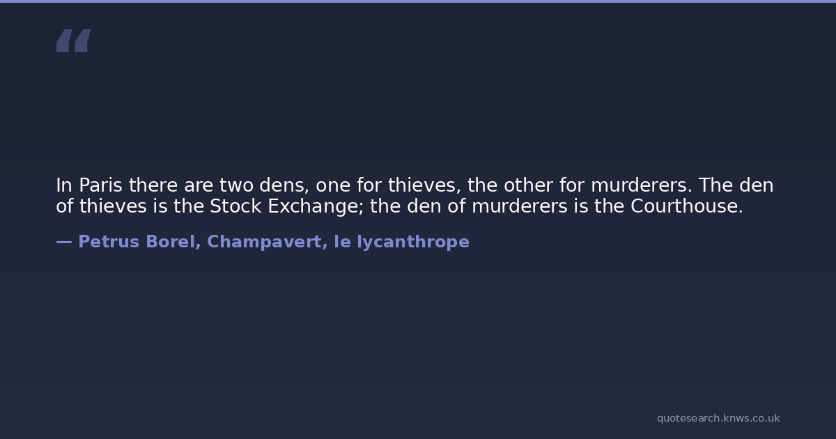 In Paris there are two dens, one for thieves, the other for murderers. The den of thieves is the Stock Exchange; the den of murderers is the Courthouse.