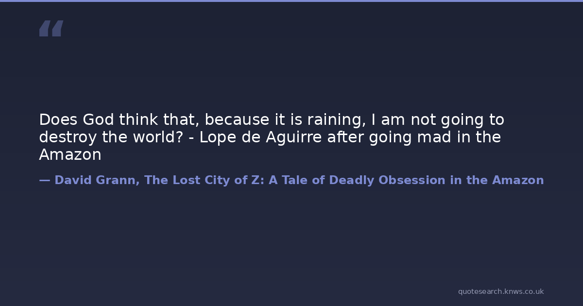 Does God think that, because it is raining, I am not going to destroy the world? - Lope de Aguirre after going mad in the Amazon
