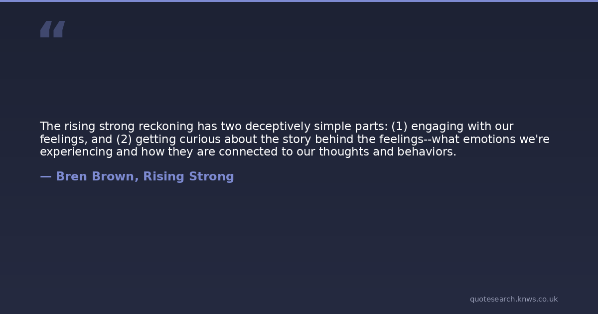 The rising strong reckoning has two deceptively simple parts: (1) engaging with our feelings, and (2) getting curious about the story behind the feelings--what emotions we're experiencing and how they are connected to our thoughts and behaviors.