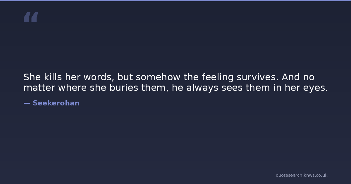 She kills her words, but somehow the feeling survives. And no matter where she buries them, he always sees them in her eyes.