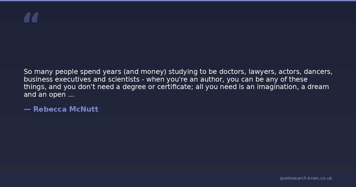 So many people spend years (and money) studying to be doctors, lawyers, actors, dancers, business executives and scientists - when you're an author, you can be any of these things, and you don't need a degree or certificate; all you need is an imagination, a dream and an open mind.