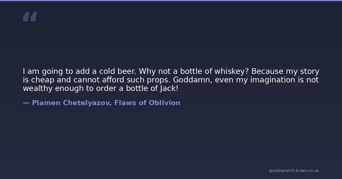 I am going to add a cold beer. Why not a bottle of whiskey? Because my story is cheap and cannot afford such props. Goddamn, even my imagination is not wealthy enough to order a bottle of Jack!