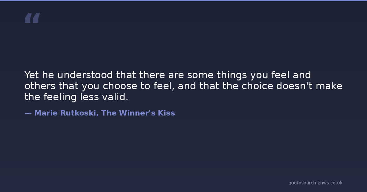 Yet he understood that there are some things you feel and others that you choose to feel, and that the choice doesn't make the feeling less valid.