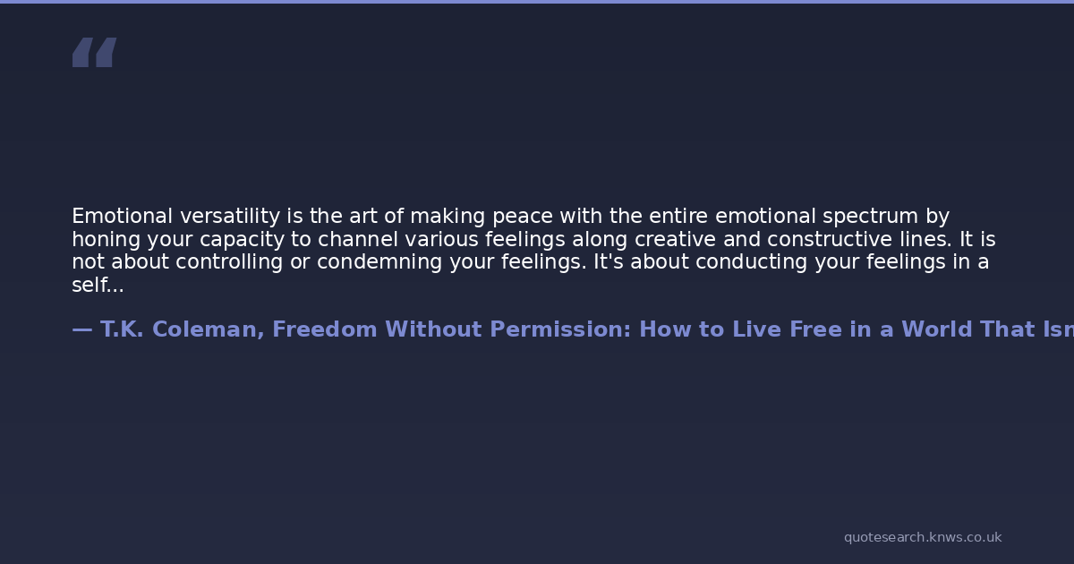 Emotional versatility is the art of making peace with the entire emotional spectrum by honing your capacity to channel various feelings along creative and constructive lines. It is not about controlling or condemning your feelings. It's about conducting your feelings in a self-edifying way.