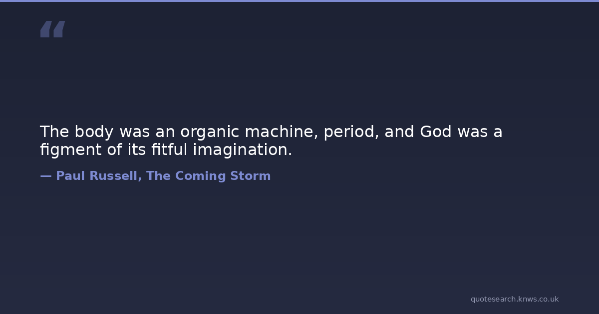 The body was an organic machine, period, and God was a figment of its fitful imagination.