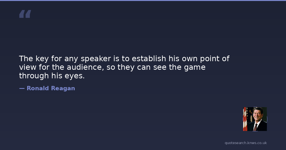 The key for any speaker is to establish his own point of view for the audience, so they can see the game through his eyes.