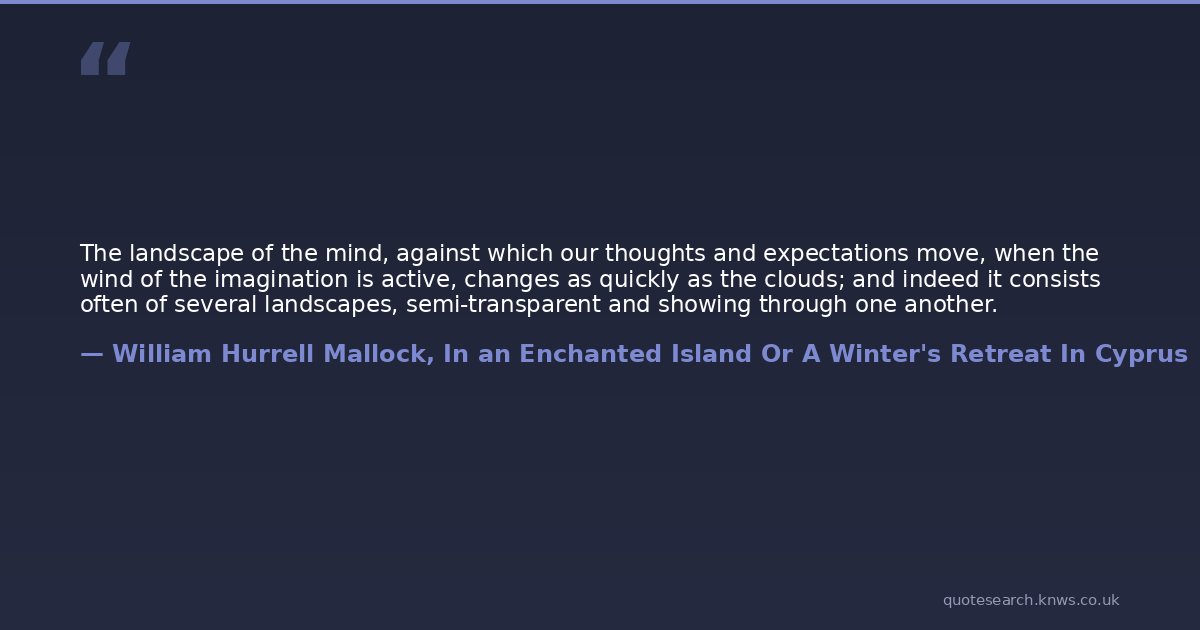 The landscape of the mind, against which our thoughts and expectations move, when the wind of the imagination is active, changes as quickly as the clouds; and indeed it consists often of several landscapes, semi-transparent and showing through one another.
