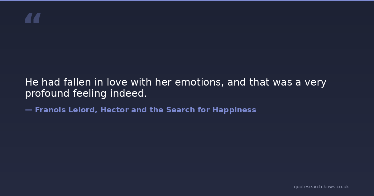 He had fallen in love with her emotions, and that was a very profound feeling indeed.