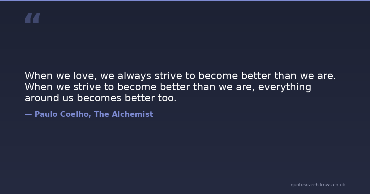 When we love, we always strive to become better than we are. When we strive to become better than we are, everything around us becomes better too.