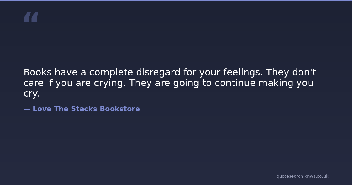 Books have a complete disregard for your feelings. They don't care if you are crying. They are going to continue making you cry.