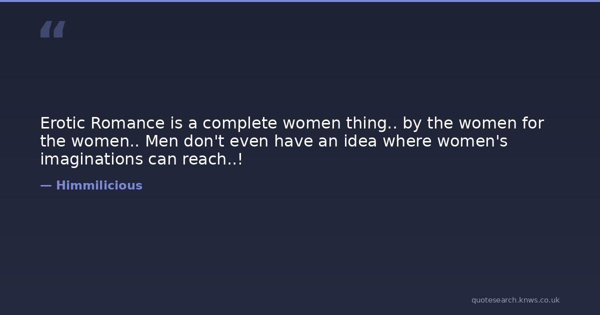 Erotic Romance is a complete women thing.. by the women for the women.. Men don't even have an idea where women's imaginations can reach..!