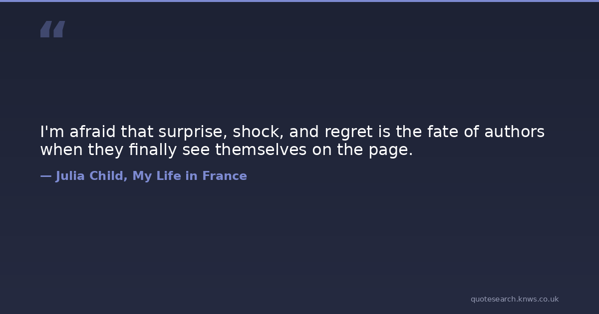 I'm afraid that surprise, shock, and regret is the fate of authors when they finally see themselves on the page.