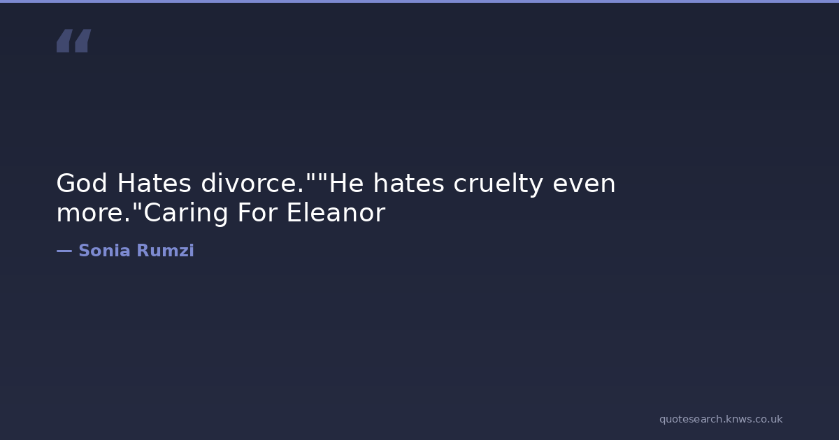 God Hates divorce.""He hates cruelty even more."Caring For Eleanor divorce eleanor god love loving novel salma Download Image Share on X Share on Facebook Copy Link