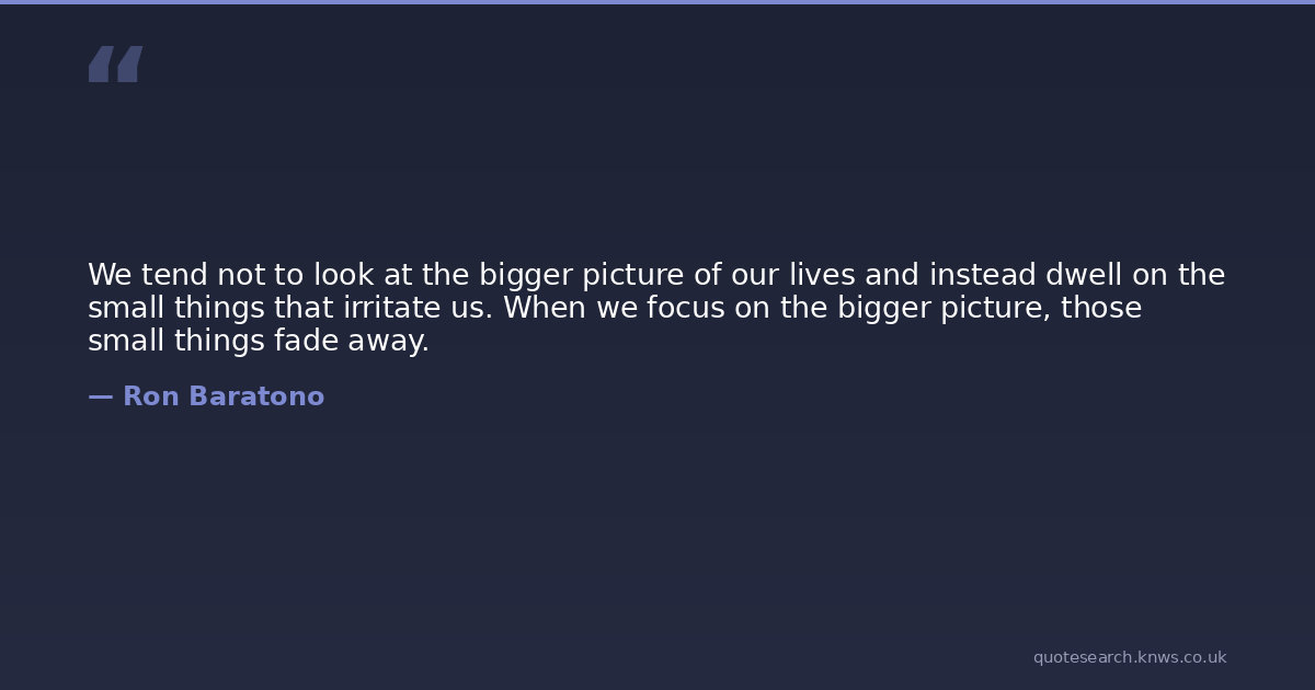 We tend not to look at the bigger picture of our lives and instead dwell on the small things that irritate us. When we focus on the bigger picture, those small things fade away.