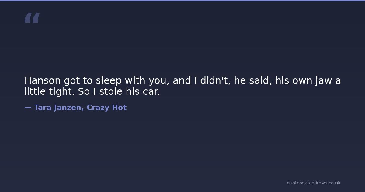 Hanson got to sleep with you, and I didn't, he said, his own jaw a little tight. So I stole his car. romance romantic-suspense Download Image Share on X Share on Facebook Copy Link