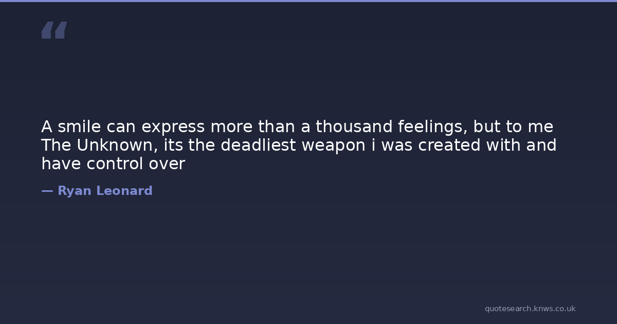 A smile can express more than a thousand feelings, but to me The Unknown, its the deadliest weapon i was created with and have control over