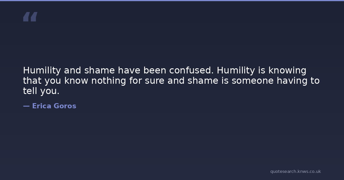 Humility and shame have been confused. Humility is knowing that you know nothing for sure and shame is someone having to tell you.