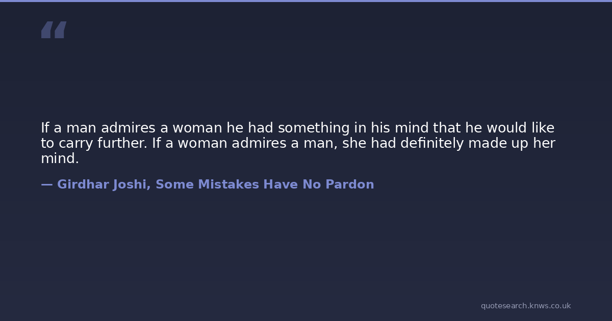 If a man admires a woman he had something in his mind that he would like to carry further. If a woman admires a man, she had definitely made up her mind.