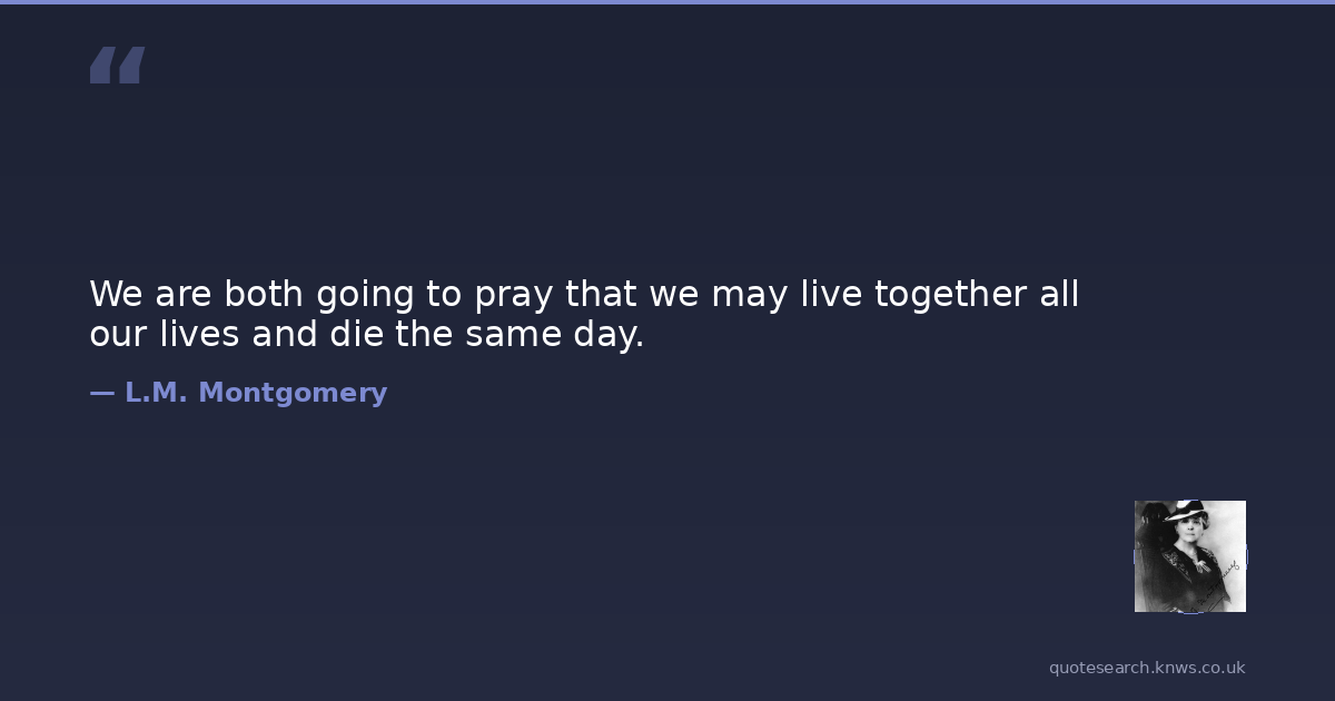 We are both going to pray that we may live together all our lives and die the same day.
