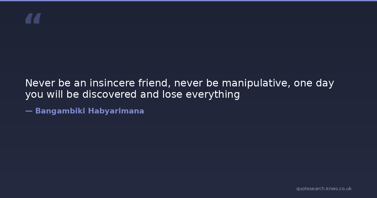 Never be an insincere friend, never be manipulative, one day you will be discovered and lose everything