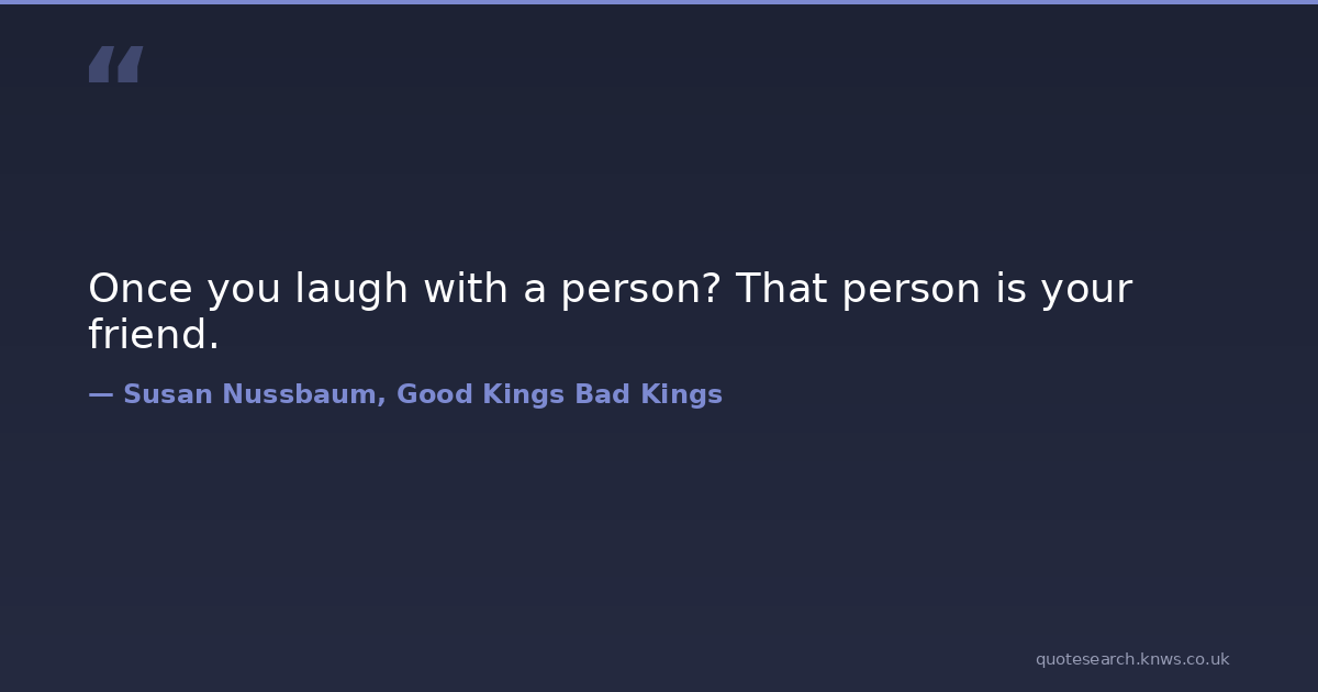 Once you laugh with a person? That person is your friend. friends good-kings-bad-kings laughing mgg susan-nussbaum Download Image Share on X Share on Facebook Copy Link