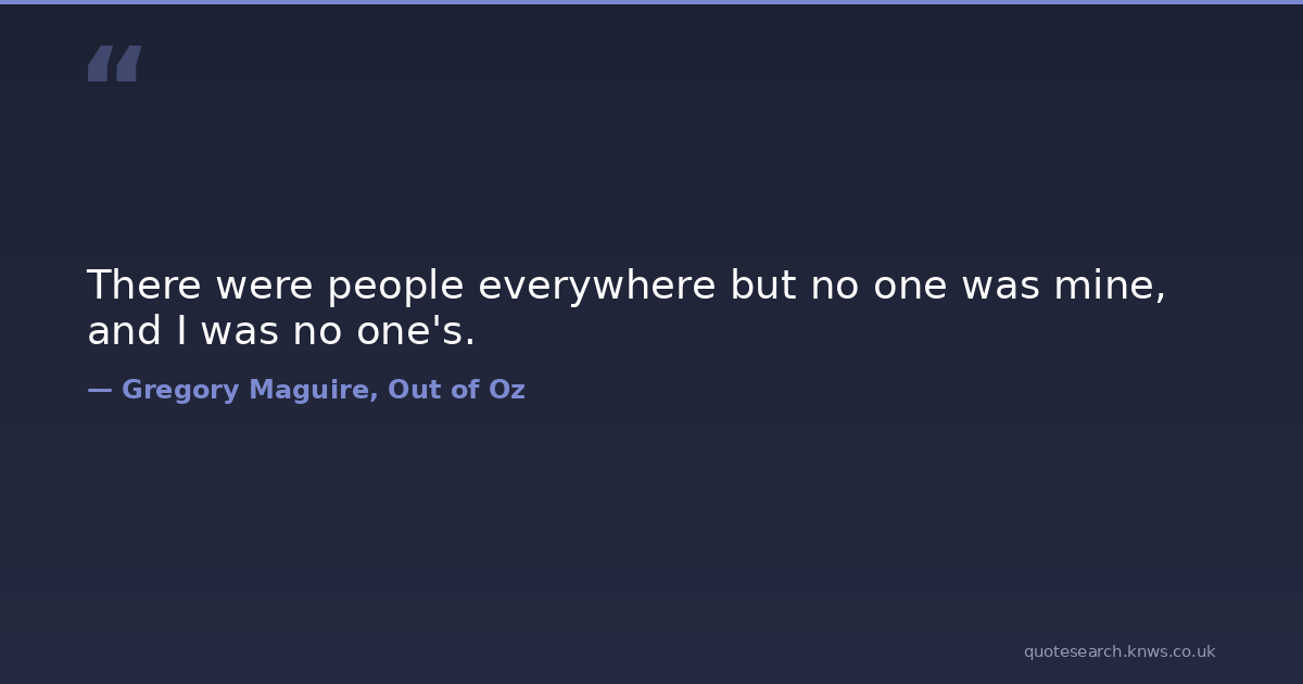 There were people everywhere but no one was mine, and I was no one's. loneliness Download Image Share on X Share on Facebook Copy Link