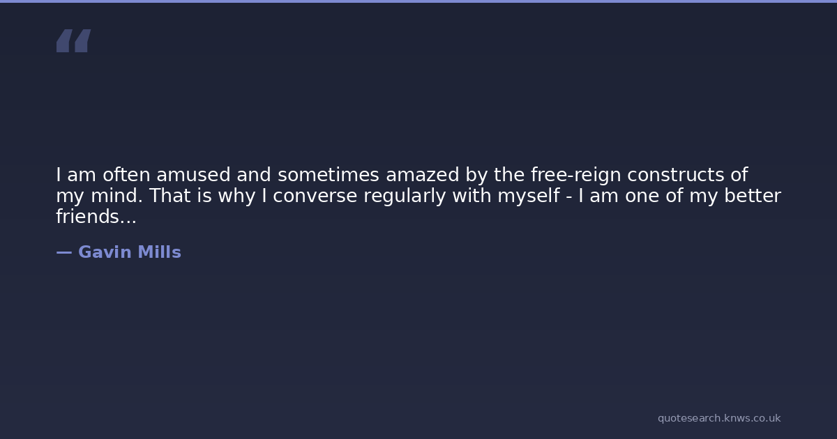 I am often amused and sometimes amazed by the free-reign constructs of my mind. That is why I converse regularly with myself - I am one of my better friends...