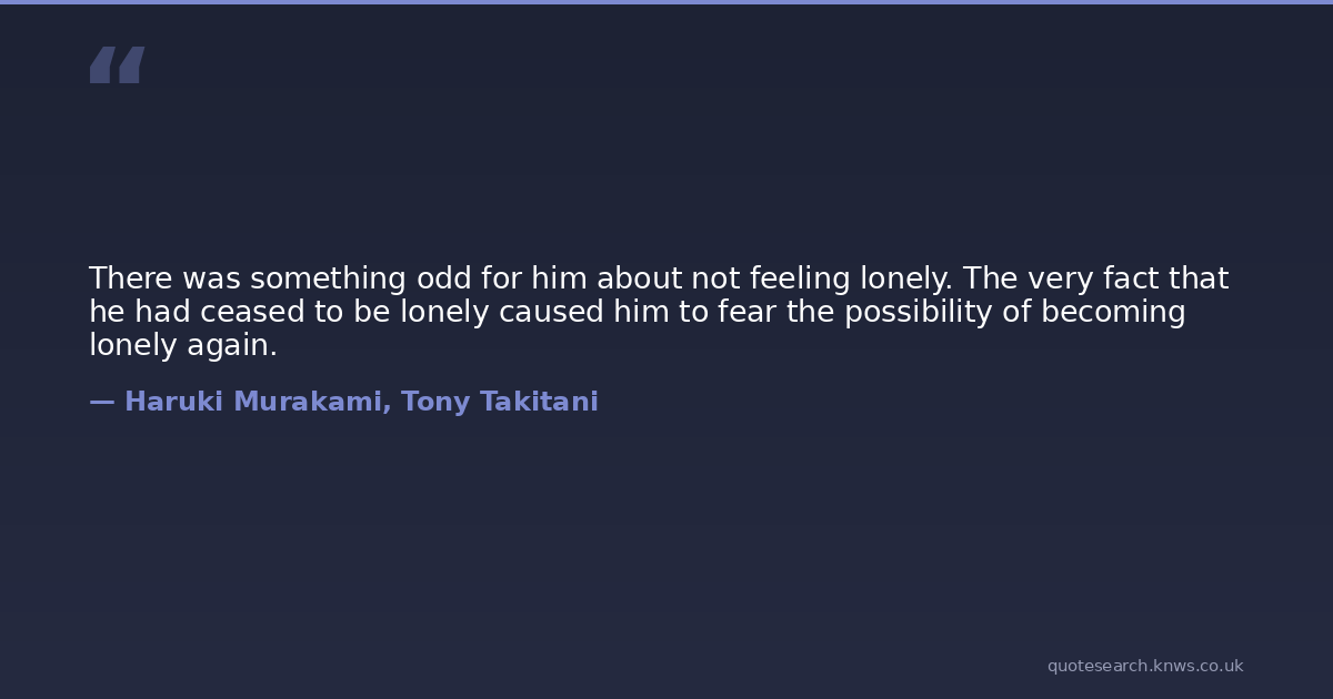 There was something odd for him about not feeling lonely. The very fact that he had ceased to be lonely caused him to fear the possibility of becoming lonely again.