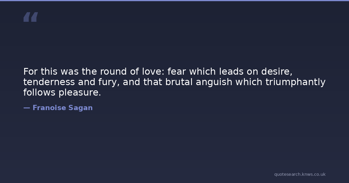 For this was the round of love: fear which leads on desire, tenderness and fury, and that brutal anguish which triumphantly follows pleasure.