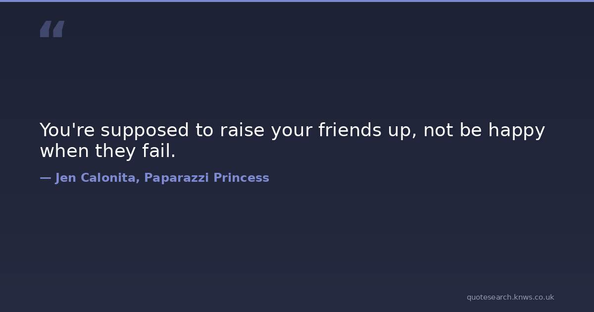 You're supposed to raise your friends up, not be happy when they fail.