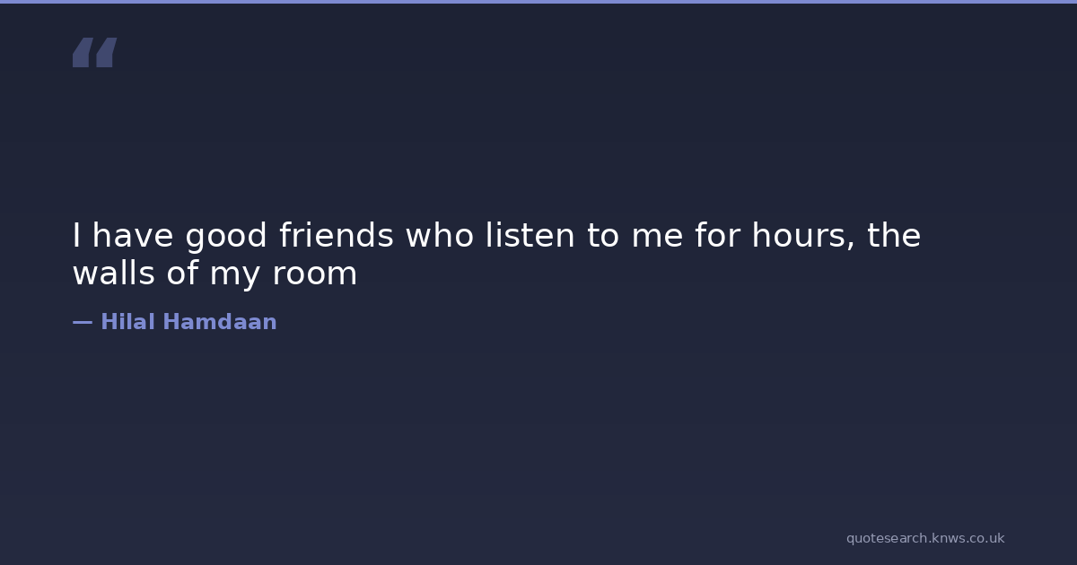 I have good friends who listen to me for hours, the walls of my room loneliness Download Image Share on X Share on Facebook Copy Link