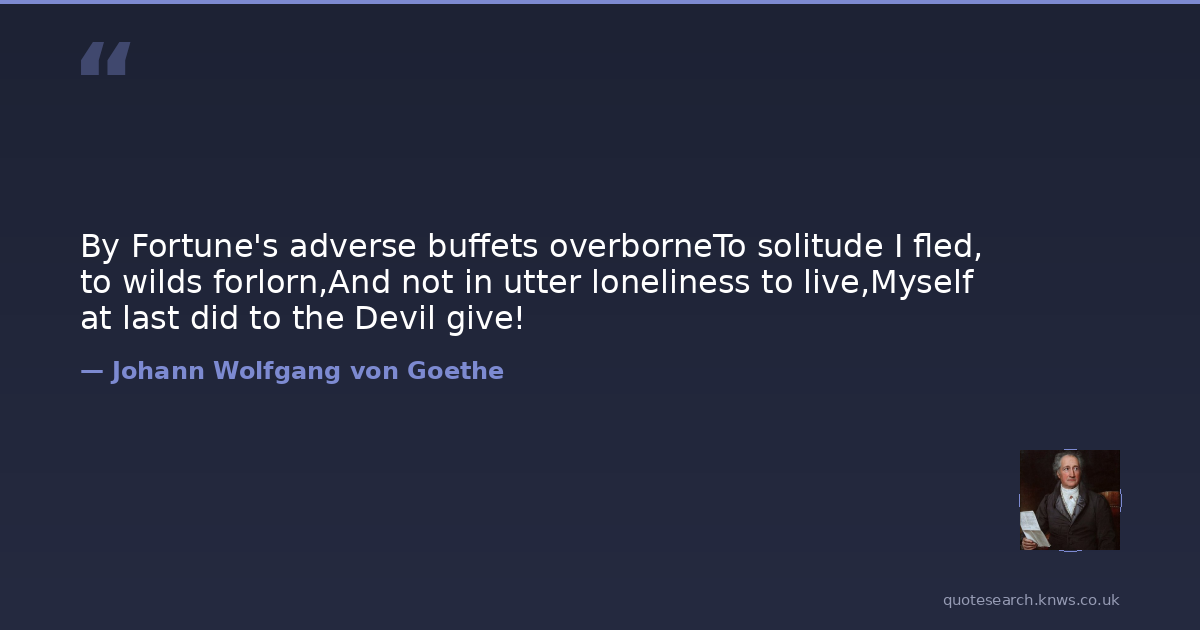 By Fortune's adverse buffets overborneTo solitude I fled, to wilds forlorn,And not in utter loneliness to live,Myself at last did to the Devil give!