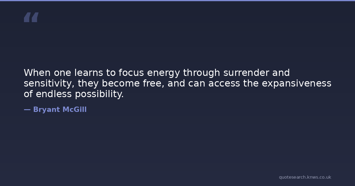 When one learns to focus energy through surrender and sensitivity, they become free, and can access the expansiveness of endless possibility.