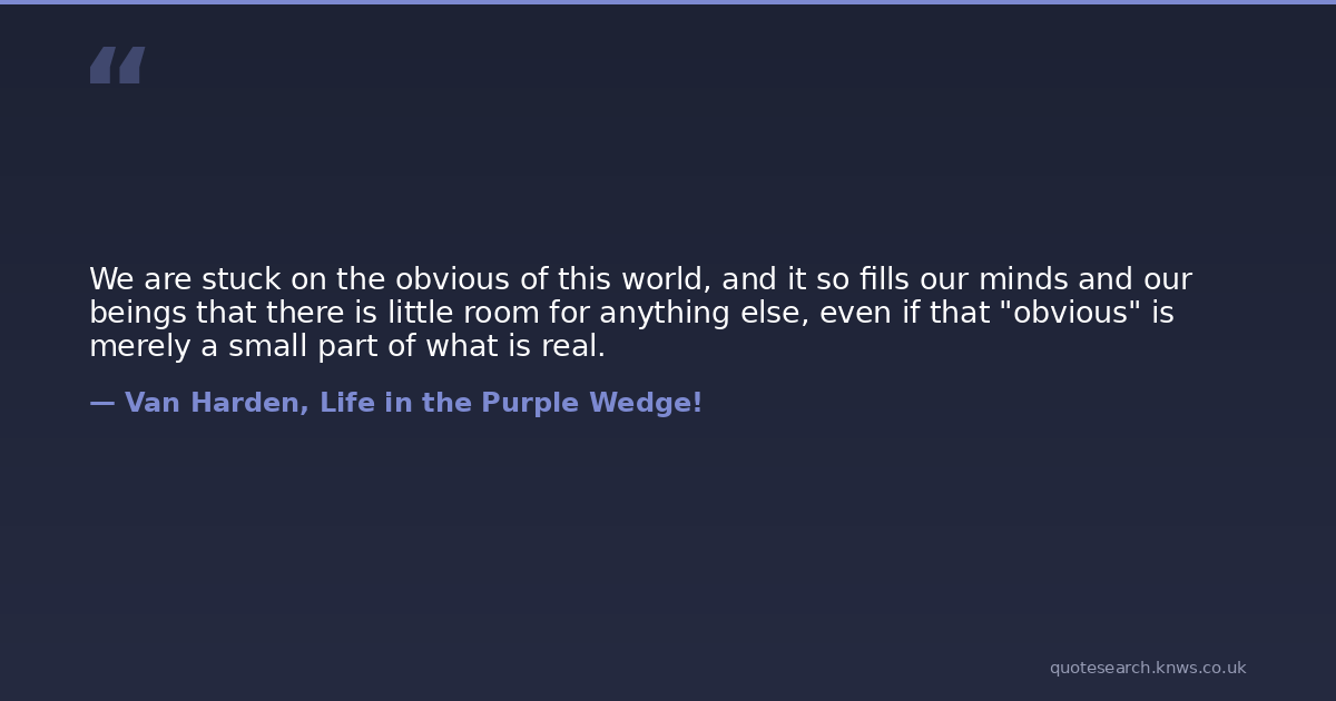 We are stuck on the obvious of this world, and it so fills our minds and our beings that there is little room for anything else, even if that "obvious" is merely a small part of what is real.