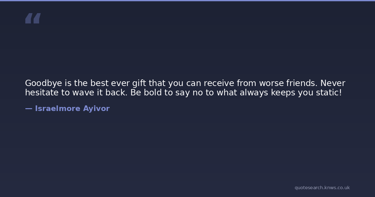 Goodbye is the best ever gift that you can receive from worse friends. Never hesitate to wave it back. Be bold to say no to what always keeps you static!