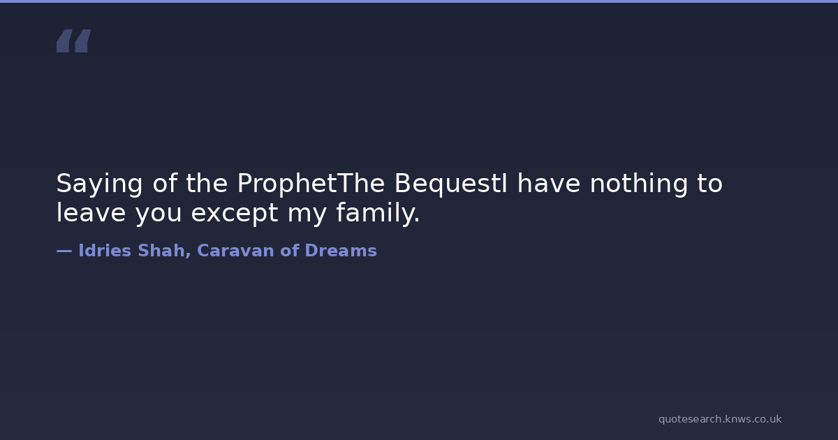 Saying of the ProphetThe BequestI have nothing to leave you except my family.