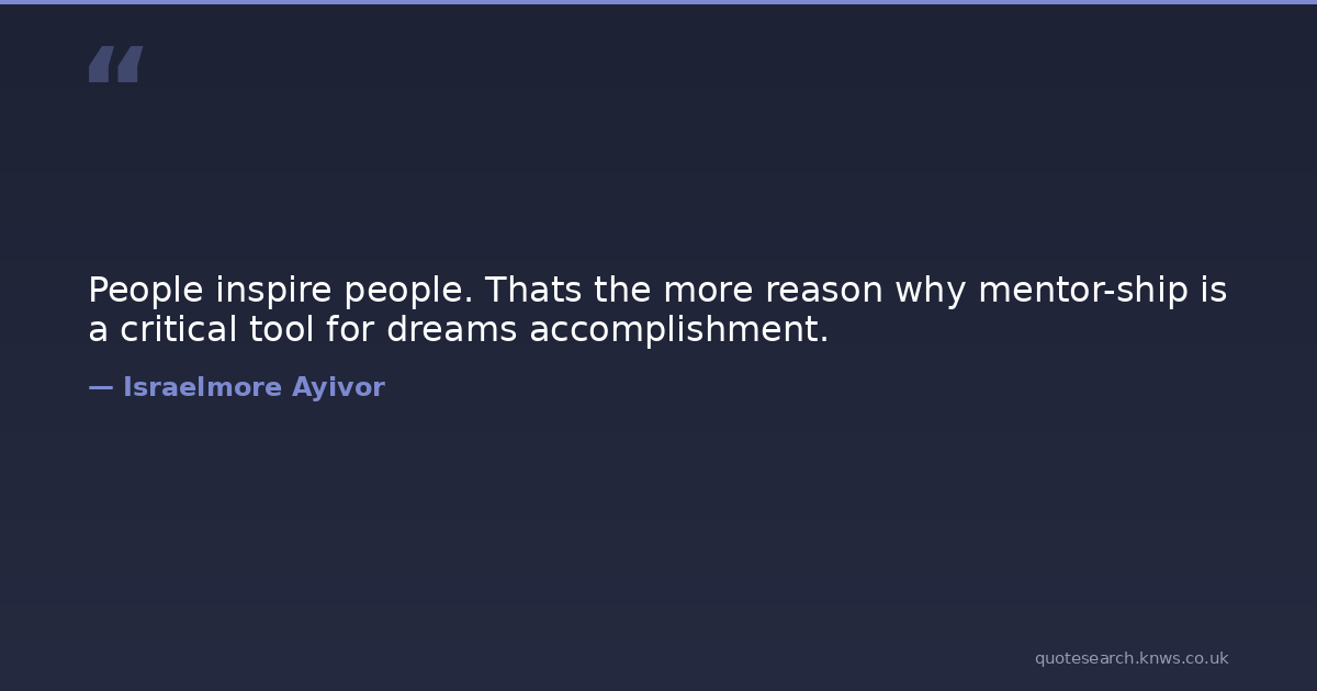 People inspire people. Thats the more reason why mentor-ship is a critical tool for dreams accomplishment.