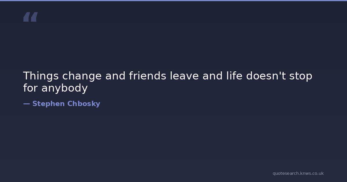 Things change and friends leave and life doesn't stop for anybody